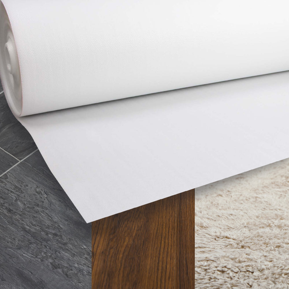 Heavy duty flooring protection for building and construction sites. Features tear resistant non slip high density weave top layer and soft non marking foam bottom layer.